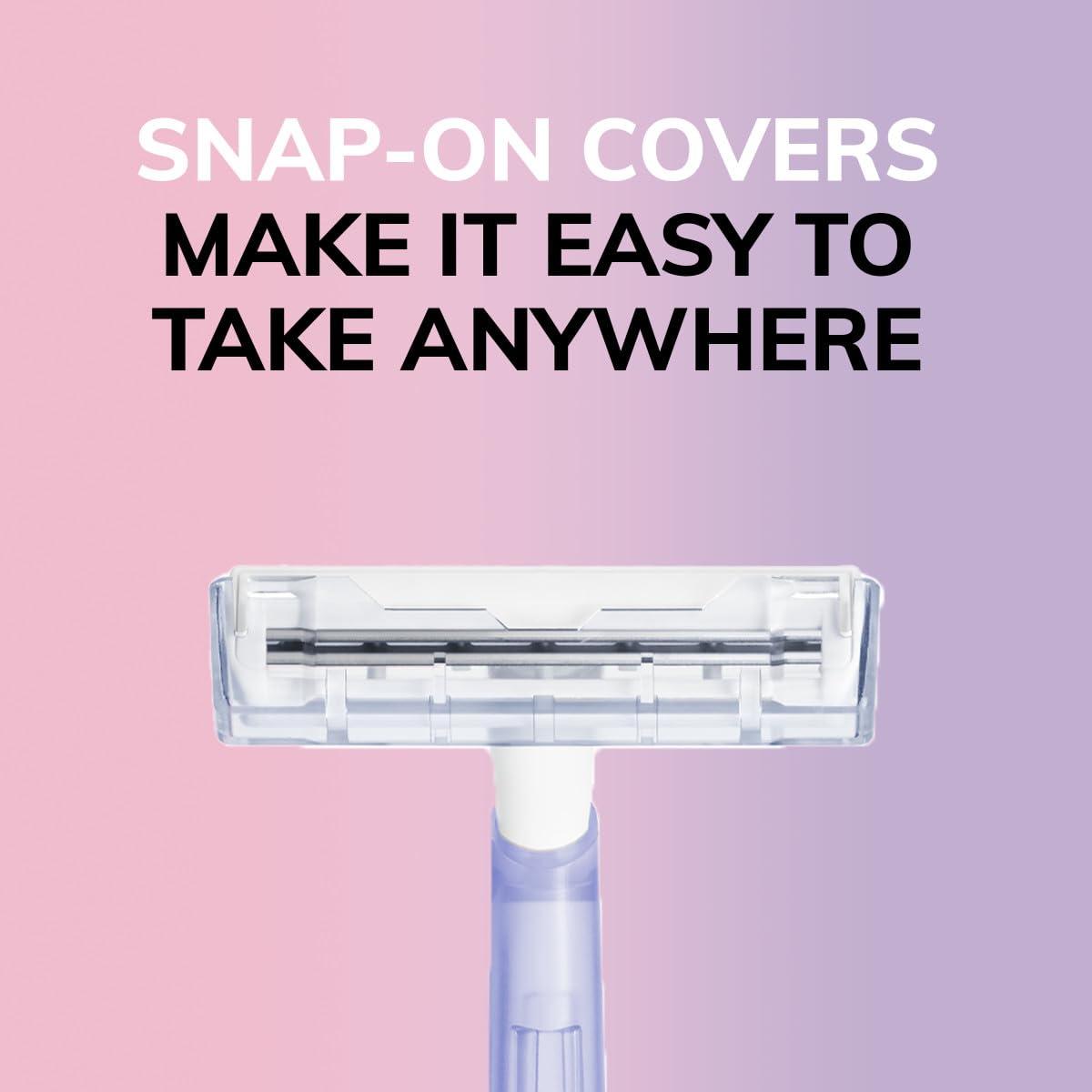 Women's razors for shaving with two blades for a smooth shave on any budget, plus each shaver has a slim head for hard to reach areas and long, tapered handle for added confidence and control while shaving
