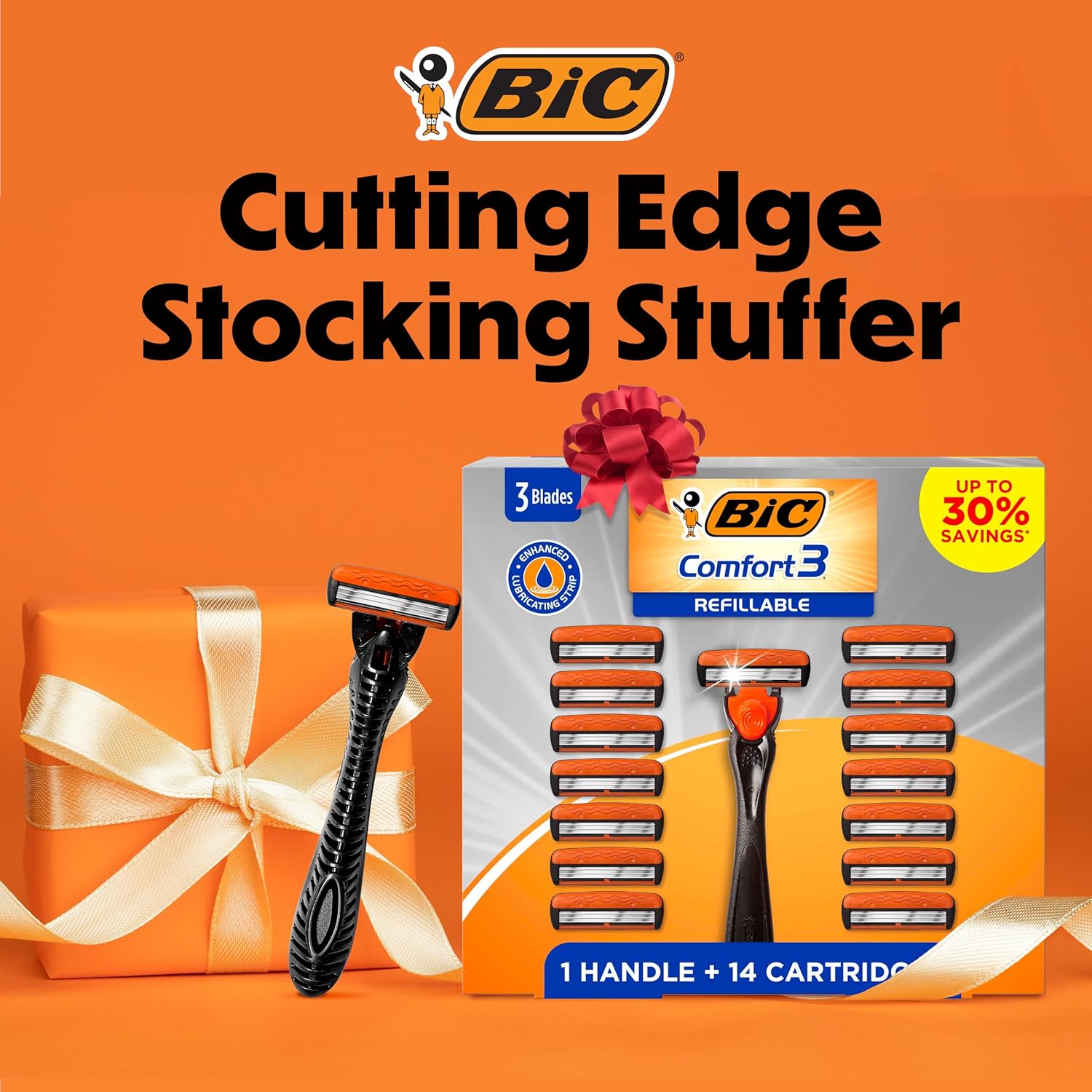 WHAT'S INCLUDED: One 15-piece BIC Comfort 3 Refillable razor kit for men containing one handle and 14 cartridges